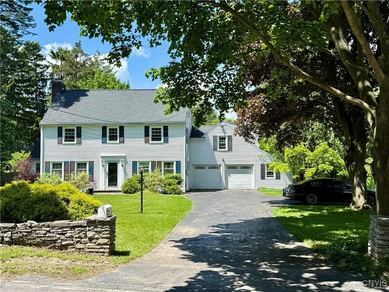 Traditional center hall colonial expanded and enhanced with over $300,000 spent in recent years on major renovations, updates and upgrades. The double lot allows for nearly an acre of yard to enjoy. Custom kitchen with walnut cabinetry and Italian Dolomite stone counter tops opens to living and dining areas, which open to the deck, patio and private back yard. Main floor bedroom, adjacent to a renovated full bathroom, is currently set up as a den. Beyond the large living room is a 4 season side porch with cathedral ceilings. This room, like much of the home, enjoys plenty of natural light through newer energy efficient windows. All 3 second floor bedrooms are very generous in size, and both 2nd floor bathrooms have been beautifully updated. A short distance from the DeWitt Wegmans and highways, a short drive to Syracuse University, the hospitals and LeMoyne College. Character, tradition and a yard full of natural beauty are all enhanced with open, modern spaces that were done in harmony with the original design features of the home. Square footage listed, from the tax records, does not reflect any of the finished space in the lower level, and may not reflect some expanded living space after renovations. The oversized 2 car garage has an attached potting shed, and an additional room for storage. Pull down stairs for easy access to the attic.