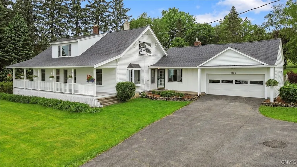 Surrounded by natural beauty and backyard privacy, this beautifully maintained farm-style home offers nearly 2,700 square feet of living space across five bedrooms on 13 breathtaking acres, just 20 minutes from downtown Syracuse and within the Fabius-Pompey School District. Two first-floor bedrooms (one opening to the backyard) join three upstairs, as well as a cedar closet, with full baths on each level. The main floor features a kitchen that overlooks the backyard, formal dining and living rooms, and a family room with a gas fireplace; Douglas-Fir hardwoods lie beneath the carpet, and both flooring and baths have been tastefully updated. A walk-out basement provides flexible space for storage or hobbies, while the oversized two-car garage boasts a newer door. Recent upgrades include a brand-new roof (2023), fresh exterior paint on the house and barn, a composite front porch ideal for relaxing, and a new hot-water tank. Outdoors, enjoy mature trees, flowering perennials, abundant fruit plantings (pear and cherry trees, blueberries, grapes, raspberries, asparagus beds), an organic garden, an organically harvested hay field, an 18 20 barn, a chicken coop with electric, and a partially fenced yard. From the hay field you ll savor sweeping valley views of Syracuse, radiant sunsets, and the occasional hot-air balloon drifting overhead an enchanting backdrop. Close to snowmobile trails and Pompey Golf Course, this property blends rural tranquility, natural beauty, and modern convenience. Public records list the home at 2,248 SF; a recent measurement indicated approximately 2,699 SF. SHOWINGS BEGIN MONDAY, JUNE 16 AT 9 AM. OPEN HOUSE SATURDAY, JUNE 21, 11 AM 1 PM.