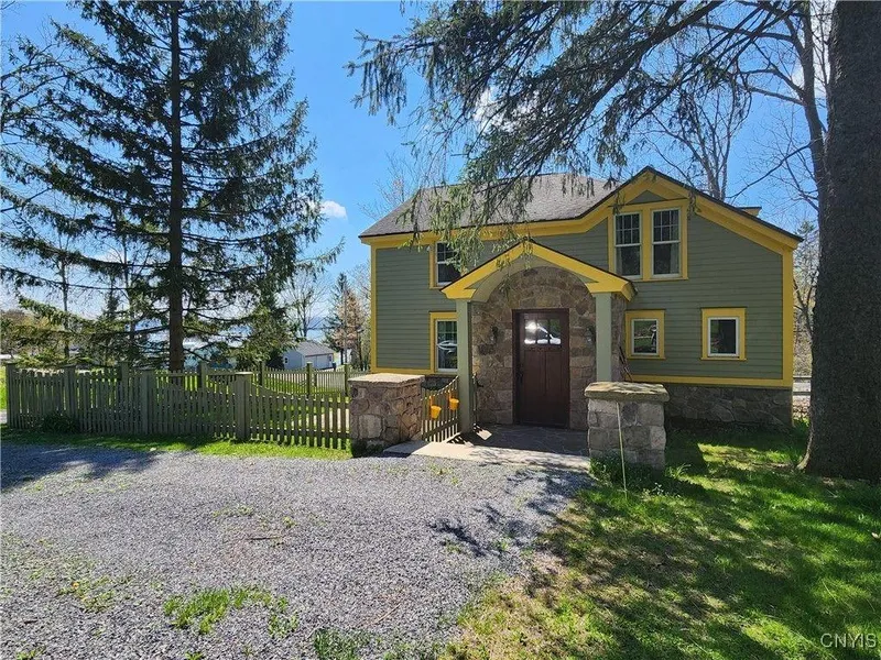 Updated Farmhouse is a treasure with year-round Lakeview, situated directly across from Skaneateles Sailing Club. This home has Deeded Lake Rights to Sail Club Beach and facilities with paid annual Membership. Don't sail? Special Membership is affordable and includes Learn to Sail on Club boats. Owners will include mooring ball and anchor for your motorboat. This home was lovingly restored with impressive stone facade, Hardie Board siding, new roof, high-end kitchen, large rear foyer with cedar closets, hardwood floors throughout. The land is peaceful, private, pristine bordering Snowy Creek and woods adjoining CNY Land Trust on Schooner Hill. Spacious rooms, lakeside covered porch, fenced-in yard, 1 1/2 acres, abundant perennials. Don't miss this opportunity to have affordable lake access directly across the street with all the amenities of kitchen and baths offered at the Sailing Clubh...