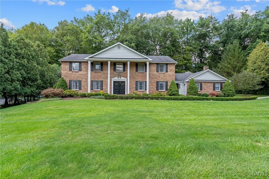 Welcome to 5027 Pine Valley Drive, Fayetteville, NY. Transitional home tucked away on a private road in the highly desirable Lymestone Hill neighborhood, this stunning 4,246 square foot residence blends timeless elegance with modern comforts. A stately portico welcomes you inside, where a slate-floored foyer with a sweeping staircase and powder room sets the tone. Throughout the home, hardwood floors, solid wood doors, and custom millwork add warmth and sophistication. The main level is designed for both everyday living and entertaining. The spacious living room flows seamlessly into a chef’s kitchen, featuring granite countertops, double ovens, stainless steel appliances, a large island, pantry, and sunny eat-in area. From here, step out onto the expansive composite deck for al fresco dining, or cozy up in the adjacent family room, highlighted by a dramatic floor-to-ceiling brick firepl...