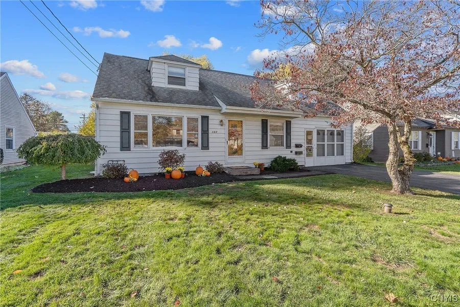 Charming Cape in North Syracuse with great flow! This 3-bedroom layout offers 1 bedroom on the main level and 2 spacious bedrooms upstairs with excellent closet storage. Enjoy a sunlit living room and dining room connected by an open staircase, plus gorgeous refinished hardwoods and fresh interior paint. The 1-car garage opens to a flex space-ideal as a workshop or hangout area. The finished basement adds extra living/play/media space and is ready for your personal touch. Outside, a good-sized backyard features a patio and storage shed. Full of character and neighborhood appeal-don't miss it! Offer deadline has been set for Monday, 11/3 at 10am.