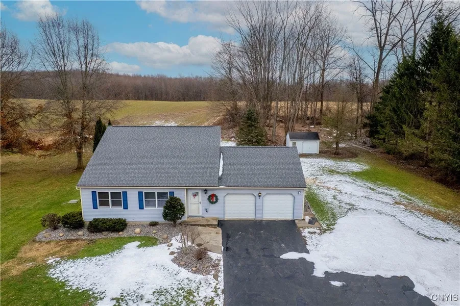 >>>>>>>>>> OPEN HOUSE SCHEDULED FOR SUNDAY, 1/18 IS CANCELLED >>>>>>>> Beautifully maintained home on nearly an acre near the popular Village of Elbridge—famous for its rolling drumlins and stunning vistas. Enjoy a scenic 15-minute commute to Syracuse or Auburn and quick access to Skaneateles Village/Lake – one of Central New York's most popular destinations. Located on a quiet road minutes from major highways, this home features vaulted ceilings, a first-floor primary bedroom, a luxurious bath (new shower, sink, flooring, fixtures, and fresh paint), a second full bath upstairs, freshly painted family room with new carpet, gleaming ¾" hardwood floors, and a modern kitchen with new backsplash, fixtures, and upgraded lighting. Enjoy a paved driveway with a turnaround, a spacious deck, a 10x16 electrified shed, professional landscaping, and low utilities (natural gas!) averaging only $200 per month. Award-winning Jordan-Elbridge School District offers free meals, accelerated courses, arts, athletics, the 2025 NYSFBC championship marching band, and U. S. News & World Report recognition—plus a full-day Pre-K program for 3 and 4-year-olds that includes transportation. Don't miss this perfect blend of country charm, community spirit, and a short urban commute - schedule your private showing today!