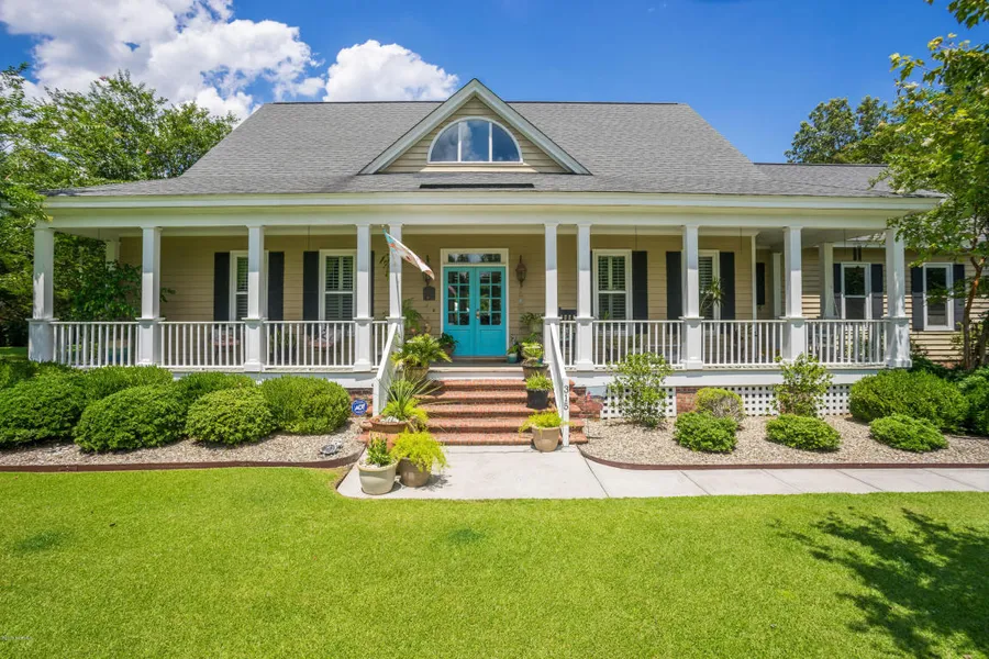 Luxury Coastal Living! From the pillar-lined front porch to the meticulously maintained custom landscaping, you're bound to fall in love with the curb appeal that this home offers. Nestled amongst mature trees and situated on a 1.67 acre, cul-de-sac lot, this dream home offers everything on your wish list! From the moment you enter through the welcoming Tiffany Blue double front door, you're greeted by a grand Cape-Cod style, two story foyer with views into the living room and the adjoining formal dining room. Detailed with both chair rail and plantation blinds, the formal dining room provides plenty of space for entertaining. Centered by a gorgeous Craftsman style mantle and gas log fireplace, the Living Room also boasts incredible vaulted ceilings and custom cabinetry.. Elegance meets functionality in this homes kitchen which features upgrades such as granite countertops, stainless ste...