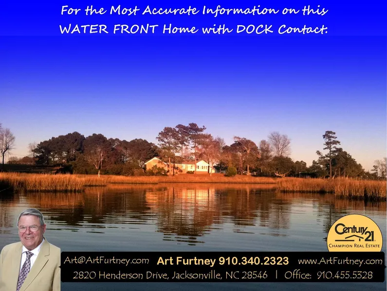 A Rare Find! 2.5 acre waterfront property on high ground with breathtaking views from every window. Home is situated in a park like setting, with a gated entrance and plenty of land for an additional home, studio or in-law quarters. Single story living, with an attached 2-1/2 car garage and a separate workshop / boat garage. Fish off your own 100 foot pier, launch kayaks from your backyard and grill steaks from your deck while watching the waterfowl and fish jump at the sunset! Minutes from Historic Swansboro, the ICW and around the corner from Hammocks Beach State Park. Give us a call, we would love to show you this beautiful home and discuss what the next step is for you to be able to call it HOME!