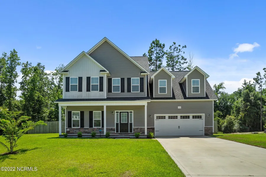 This one will EXCITE! This PRACTICALLY NEW 3-bedroom, 2 1/2-bahtroom + BONUS ROOM is located in the quaint Tides End subdivision of Holly Ridge. Just minutes to the beaches and to the local military installations including Stone Bay, Camp Lejeune, and the New River Air Station, this property is ideal! The home is lightly lived in and still has that new home look and smell. Stand on the covered front porch and take in the peace and quiet of the area. Walk through the front door and you'll see the large living room to the left and the foyer and then kitchen straight ahead. The dining area is open to both the living room and the kitchen. The fabulous kitchen has a spacious island with breakfast bar, lots of counterspace, a pantry, ample cabinets, a built-in desk area, and stainless-steel appliances. Down the short hall off the kitchen, you will find additional closet space, the door to the garage, and the powder room. Upon reaching the top of the stairs turn right and you will find the bonus room. The bonus room is quite spacious and includes a closet. Just outside the bonus room is the laundry room to the left and the guest bathroom to the right. Further down the hall, you'll find a guest bedroom to the left and then the primary owner's suite on the right. The final guest bedroom is around the corner to the left and at the front of the home. The primary owner's suite overlooks the back of the property and has TWO WALK-IN CLOSETS and is adjoined with the owner's bathroom. The bathroom contains a dual-sink vanity, a large soaking tub, and a walk-in shower. The property extends well beyond the fully fenced yard making for exceptional privacy. Come see this stunning home today before it's gone!