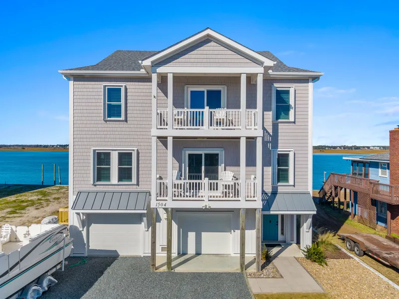 Perfect in every way! This nearly new home on Carolina Blvd on the S End of Topsail Island has it all. On a 60 foot deep water lot with 5 boat slips..........one of them is a 45 foot drive thru slip in addition to 3 boat lifts and another in water slip is a boaters dream. 4 bedrooms each with private baths plus an additional den on the middle floor gives room for family and friends to share time together. Double garage with abundant storage keeps your cars and water toys protected and a place to do your projects. There is a whole house generator with a 250 gal propane tank, a water filter system and an irrigation system for the yard plus total hurricane protection for doors and windows. And an elevator makes living easy. On the top floor, the views are sweeping from the covered deck. The open plan and generous space offers many options for being together and the outdoor space adds to tha...