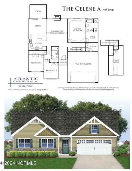 Atlantic Construction's Celene plan with a Bonus Room is one of the most popular plans from this reputable local builder! With nearly 1800 heated square feet, 3 bedrooms, and 2 bathrooms, PLUS a BONUS, this home has a 0.85 acre lot, there's space for everyone. Open living area with split floorplan, cathedral ceilings, gas fireplace, spacious kitchen, and a patio off the dining area. The owner's suite is on the garage side of the house with a walk in closet, double vanity sinks, and a separate tub and shower in the bathroom. The Bonus room might be the perfect spot for a home office, game room, or play room for all those toys! There's no HOA but there will be reasonable deed restrictions, and you are just a short drive from MCAS New River, Camp Lejeune, Stone Bay, or the beaches of Topsail Island. Act quickly and you can pick the colors you want to suit your own style! These should be ready for you to seize the keys in August 2024, call a Realtor today for more info!