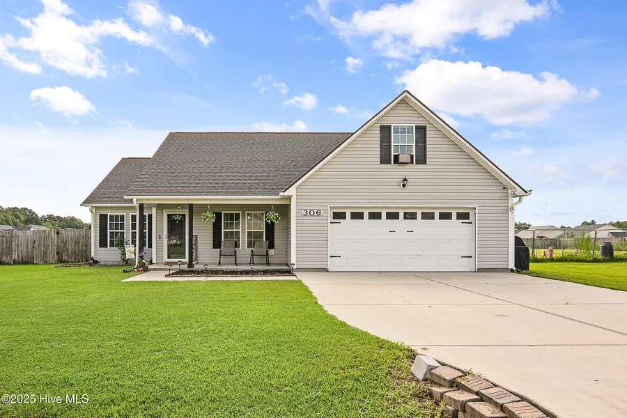 Welcome Home! This beautiful three-bedroom, two-bath home sits on a desirable corner lot with a peaceful country setting in the sought-after Simpsons Crossing neighborhood. Enjoy your privacy in the large fenced backyard, complete with a screened-in porch, perfect for outdoor relaxation and entertaining. Inside, the living room features vaulted ceilings and a cozy fireplace, creating a warm and inviting space. The spacious eat-in kitchen is equipped with stainless steel appliances, a breakfast bar, and a pantry, ideal for both everyday meals and hosting. This home offers ample closet space and a bonus room with built-in shelving conveniently located above the two-car garage. Recent updates include the roof and gutters replaced in July 2025, providing peace of mind for years to come. Located just minutes from Albert J. Ellis Airport and Richlands, and a short drive to New River Air Station and Camp Lejeune, this property combines comfort, convenience, and charm. Don't miss your chance to make this gem your home!