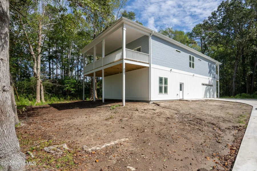 Stop the car! Don't miss this stunning custom-built home on just over an acre in Holly Ridge - and best of all, NO HOA! As you enter the lower level, you're greeted by a spacious great room with direct access to the oversized garage. Upstairs, enjoy an open floor plan designed for modern living, featuring 3 large bedrooms, 1 large bonus room and 3 full bathrooms: A gourmet kitchen with custom cabinetry and tile backsplash. Large bedrooms two with ensuites with spa like showers and generous closets. One full hall bath and another large bedroom. Elevator shaft already in place with custom shelving - ready for future elevator installation Step outside to expansive front and back decks, perfect for entertaining or relaxing in your private wooded lot. This home has the space, flexibility, and custom touches you've been searching for - come see it before it's gone!