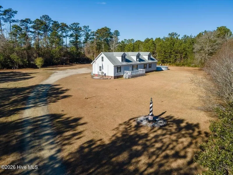 This inviting 3-bedroom, 2.5-bath home is set on 5 picturesque acres, offering privacy, space, and the freedom of country living. The main floor boasts an open concept, with a den featuring a fireplace for cool Carolina evenings & a huge kitchen offering tons of cabinet and countertop space for prepping & entertaining. The living room offers additional space for spreading out. The master suite offers a dual vanity, stand-up shower, soaking tub, and walk-in closet. The laundry room, 2 additional bedrooms, an office, and a full bathroom complete the first floor. Upstairs, you'll find additional bonus rooms that provide flexible space for a playroom, guest area, or hobby rooms-tailored to fit your lifestyle needs. The expansive property allows horses and offers ample room for outdoor activities, riding, or future improvements. A detached two-car garage provides plenty of storage and parking...