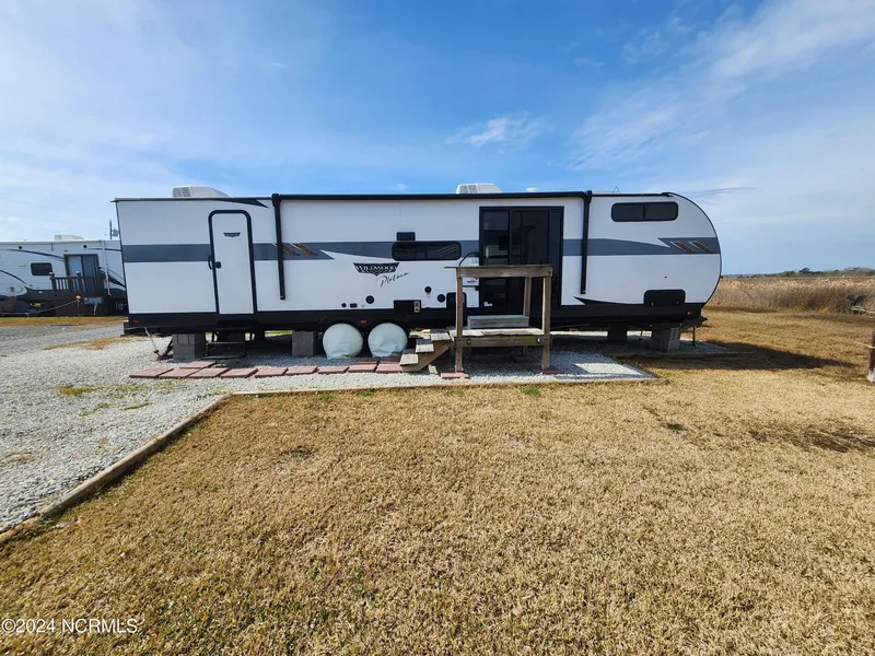 This is your opportunity to have your own little piece of paradise or an excellent investment opportunity. Located in Rogers Bay Campground, this NEW 2023 Wildwood 36VBDS allows you to enjoy an inviting seating area, electric fireplace, kitchen with microwave, gas stove, refrigerator and a pantry closet. The camper has 2 bedrooms, one with a king size bed and a second with twin size top bunks and bottom is a queen with folding access to additional storage. The bathroom includes a larger shower and camper toilet. Camper also includes the remaining balance of the first year warranty and a 15 year manufacturer defect warranty on the roof (Super Flex Roof). Roll out the awning and enjoy a little shade in front of the camper. Camper was placed on new gravel bed, leveled and anchored. New electric service installed 2024. New Tire Covers. Enjoy all camping at the beach has to offer. One of the best places to see the gorgeous sunsets in the campground. Enjoy the Rogers Bay amenities, seasonal swimming pool, 2 bath houses, laundry room, picnic shelter, play ground area, park setting with swings and picnic tables, bay access with fish cleaning station. Beach access with leased golf cart parking area.