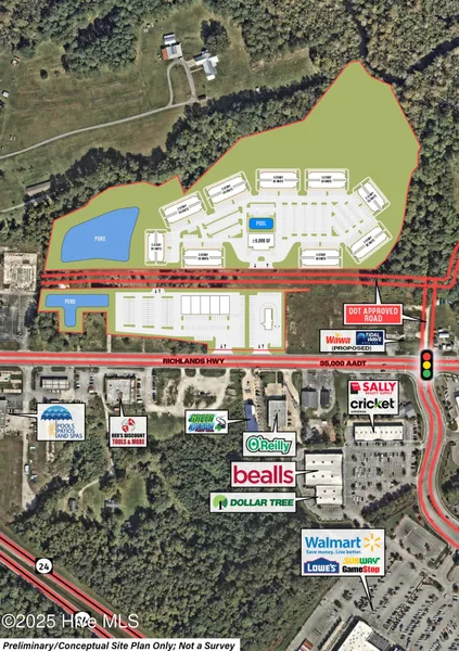 Prime Commercial Acreage in Jacksonville, NC - Unmatched Development Opportunity Retail / QSR / Multi-Family Premier commercial acreage 0.5 to 51 contiguous acres located in Jacksonville, NC An ideal site for quick service restaurants (QSR), retail, and multi-family developments. Positioned with high-visibility fronting Richlands Highway in a rapidly expanding growth corridor, this property is surrounded by nationally recognized brands including Walmart, Lowe's, Tractor Supply Co., Chipotle, Starbucks, Aldi, IHOP, and many more. A newly approved DOT access road directly across from the signalized Walmart entrance ensures seamless ingress and egress, adding even more value to this strategic location. With flexible parcel options ranging from 0.5 to 51 contiguous acres, this site offers unmatched versatility for developments of all scales. Don't miss out on this rare opportunity in a booming market-contact us today to schedule your private property tour.