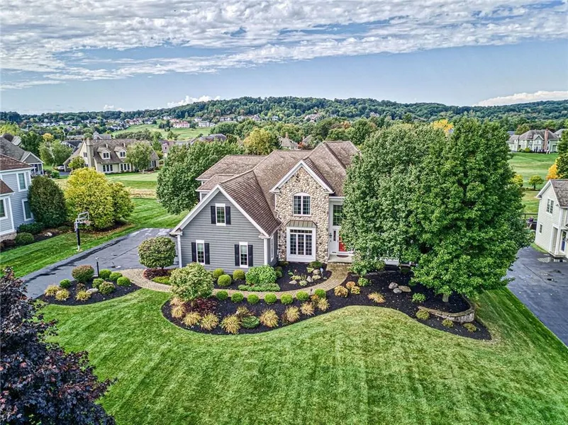 Beautiful spacious home overlooks Cobblestone Creeks 7th Fairway. Entrance hall w/high open ceilings & engineered oak flooring. Multiple living spaces w/lovely lounge areas, newly carpeted office, & formal dining w/large, bright windows. BRAND NEW composite deck w/retractable awnings, manicured landscaping, & relaxing views. Double-doored master suite bedroom w/amazing views & tray ceiling. Three more very large bdrms w/ample space for all. Each bdrm has private access to a bathroom. This WOODSTONE built home offers a very spacious bonus room (perfect 5th bedroom)! Lower level adds addtnl. square footage. This fabulous, modern space has a projector TV/entertainment area w/gas fireplace, fitness rm, & wine storage. Open plan seamlessly flows onto the outdoor, lower level, pavered patio.