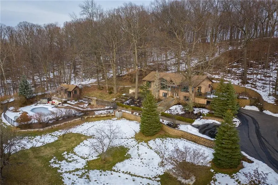 Amazing gated equine estate w/ unparalleled views on 9.5 rolling acres! Winding driveway through picturesque fenced pastures and run-in shed. New 60x140 indoor riding arena w/ 3 stalls & heated finished mezzanine. Separate,renovated barn w/ 5 stalls, tack room & hay loft. In-ground pool & 4 season pool/guest house w/ bath & outdoor shower! Chalet-style open concept home w/vaulted ceilings & panoramic views. Upstairs living area features hardwood throughout that flows through kitchen, DR, morning room & great room w/ gas fireplace, additional living space & separate office. Downstairs features 4 private bedrooms, 2 full baths & laundry. Master boasts walk-out terrace, ensuite w/ tub and huge 7 jet shower. Spectacular views of your orchards!Turn-key equine facility only 20 mins to Rochester!