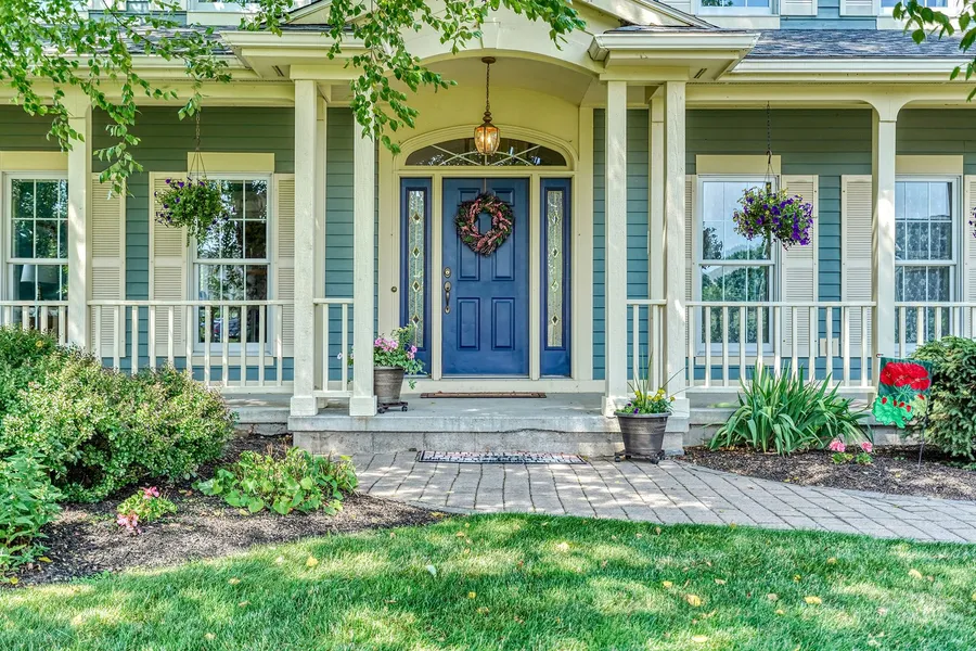 A Classic Traditional beauty in Cobblestone Creek! Enjoy relaxing on the wrap-around porch at this desirable cul-de-sac location. Main living area features beautiful natural light from the transom panes and a cozy Cobblestone fireplace. Five bedrooms all together make up the spacious second story. Primary bedroom offers double walk-in closets and is privately situated. Two separate staircases lead to the upstairs, one from the mud area! Another staircase direct from 3 car garage to the finished lower level, a handy feature for sure! Upper bonus area has a gas fireplace, work-out area, bedroom and a cool loft, making it a perfect "hangout" suite. Add to all of this a wonderfully finished lower level w/ wet bar and another fireplace. Central VAC w/sweeping port in kitchen. The large lower level windows let in light and scenery - easily make a walk-out if desired. Outside, the rare, expansi...