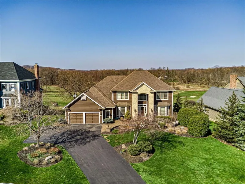 This lovely Cobblestone Creek home is situated perfectly on the 5th fairway! Natural light enters from every angle. The spacious first floor notably includes a sun room addition with gorgeous built-ins, huge office with golf course views and an upgraded kitchen loaded with high-end Dacor brand and Fisher & Paykel brand appliances, sweeping granite island and ample kitchen cabinet space, Beautiful wood flooring throughout. A double staircase leads to a well laid out second floor. The spacious Master Bedroom has a cheerful fireplace and an extraordinary, recently renovated master bath with custom cabinetry, imported tile and backsplash. Need room for all of your golf attire? This dressing area/ walk-in closet has got you covered! Well sized additional bedrooms have private bathroom access. The walk-out lower level has a stone, wood-burning fireplace, humidity-controlled wine storage, brigh...