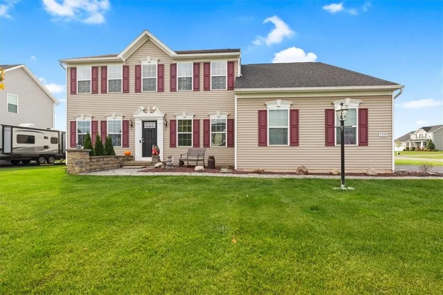 This is the highly sought after, gorgeous Ravenna model offering spacious indoor and outdoor living space. Located in the Victor school district within the town of Farmington, which is one of the fastest growing communities in the area. Close proximity to the thruway and the Finger Lakes, as well as the newly constructed community 70 acre park and the Auburn trail. The open floor plan flows perfectly, yet it also provides a dedicated office and den. Luxury LifeProof flooring is provided in the high traffic areas and hardwoods throughout. Upstairs, enjoy the convenience of 2nd floor laundry and a huge owner's suite. The outdoor living space provides a large paver deck with pergola and negotiable hot tub. There's also an oversized 12x28 shed and the lot is over half an acre. Delayed showings until 10.20.22 at 9am and negotiations until 10.26.22 at noon.