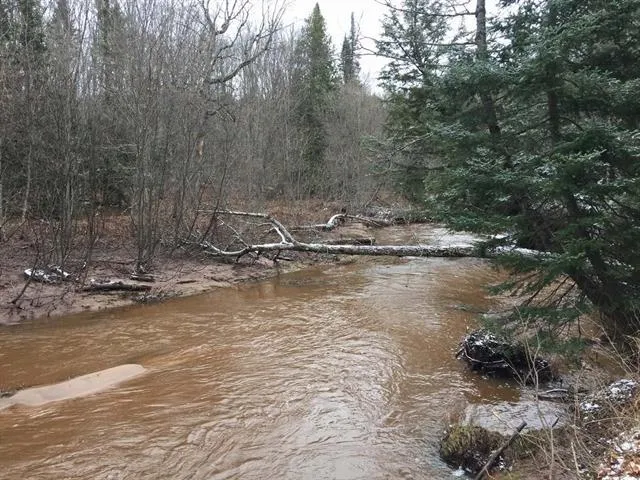 This beautiful 13 acre m/l parcel offer the beauty of the UP of MI to a buyer. It's 1000 feet m/l of frontage on the West Branch of the Firesteel River offers pristine beauty. Couple that with towering white pine and dramatic elevation change, and this offers a buyer off the grid living in a majestic building site. It is very private, tucked against M-26 with no residential neighbors even close. We imagine a gorgeous little log home on the top edge of the peninsula overlooking the river. The river meanders back and fourth and offers some renown blue ribbon trout stream fishing. The West Branch of the Firesteel River is 29 miles long and flows through the Ottawa National Forest and MI State Forest Lands. Over 18 miles long, the Main Branch empties into Lake Superior. The Firesteel River is a Michigan Blue Ribbon Trout Stream. Fishing is fantastic for native Rainbow, Brown and Brook trout. The MI DNR stocks 1000s of Brown Trout at the mouth of the Firesteel River where it meets Lake Superior. The Spring brings a yearly run of Lake Superior steelhead up the river. Fall Salmon run up the Firesteel River from Lake Superior and should make for fun fishing. On the property there is an old skidder trail just behind the south highway guardrail end that might make a great driveway in to a building site. Building parcels like this do not come along very often--come find yourself in the woods here.