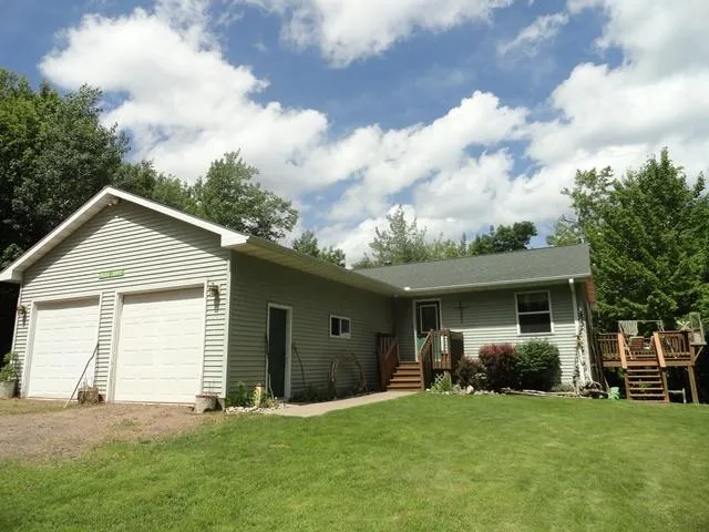 Country living at its' finest! This beautiful, 3 bdrm 2 1/2 bath, ranch style home was constructed in 2004 and features a large master bdrm, walk-in closet,master bath and jetted tub, custom kitchen with cathedral ceiling, wood burning fireplace and patio doors to the upper deck. The lower level features 2 additional bdrms, full bath, utility room, large storage area and a family room with walkout patio doors. On the exterior you will find a wraparound deck with patio access to the upper living room and bedroom, attached 2 car garage and a cozy sauna building. All of this is located on over 7.69 acres, and overlooks 400' of the beautiful Big Iron River. You will enjoy the sounds of the rushing water in the spring or a successful limit of steelhead from your front door! This spectacular property has it all! Call for more information or to schedule a showing today! (2019 Tax info: Annual t...