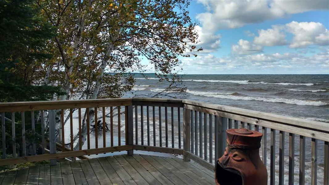 If you love Lake Superior and would like your own piece of desirable lake front property, this is a must see. This +/-100' waterfront lot is on a bluff with a deck overlooking the water and stairs down to the sandy beach. A 2008 Keystone, Sprinter 311BHS camping trailer is included with the lot. This trailer has decking across the front, with an outdoor shower room. Electricity is run to a panel where you can plug in, has a point well and pump, and a septic storage tank, all the comforts of home and a nicely developed driveway. Find fishing, swimming, kayaking, boating, hunting, snowmobiling, and atv riding opportunities here. Only about 23 miles from Houghton.