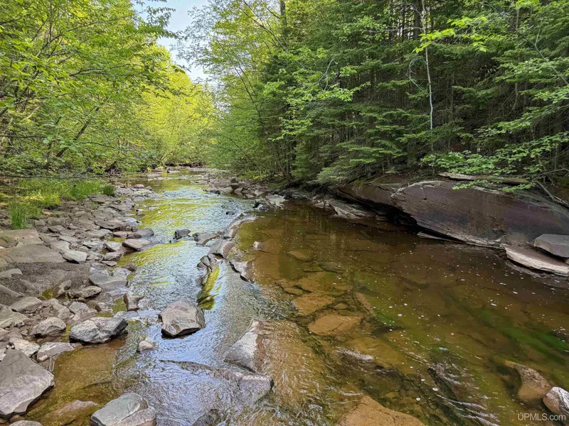 This approximately 8.0 +/- acre parcel includes about 357 feet of frontage on the Mineral River and a similar amount of frontage on an unnamed creek and offers excellent access to outdoor recreation. It’s located just 0.8 miles from a public Lake Superior beach with sugar sand and shallow, wadable water stretching about 200 feet out into the lake which is great for families. The route is mostly along a quiet dirt road, with a short highway crossing. A public boat launch is 1.8 miles away, and Porcupine Mountains State Park is just 3 miles from the property. The unnamed creek also runs through the land. While the Mineral River isn’t navigable directly from the property, you can kayak approximately 0.4 miles upstream from the river mouth at Lake Superior. The deeded private access road is in excellent condition. With the nearest building about a quarter mile away, the setting is quiet and ...