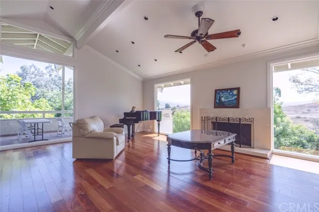 Privacy is the hallmark of this home as it backs to open land and sits on an acre lot with wide side yards between you and your neighbors. This quiet neighborhood offers both the luxury of seclusion known to those living in the rural countryside and/or a warm community experience as Orange Park Acres has several social clubs and events. Located in an equestrian neighborhood, this home has direct access from the back of the property to 20 miles of horse trails used for hiking, running, walking your dog and riding your horse. Potential to build a barn, tennis court, or storage for car enthusiasts. The best part of this home is the unobstructed view of Santiago Canyon which can be seen from the family room, living room, 2 decks, one patio, and outdoor pool area. The open floor plan was designed for entertaining 100 people inside the home. Main level bedroom and bathroom with shower. The kitchen features custom cabinets, granite countertops, and travertine flooring. Bathrooms with travertine flooring and travertine in the shower/bath area. Recessed lighting and crown molding through out. Large covered patio off the living room perfect for dinner with a magnificent view. Large pool with waterfall feature and jacuzzi. Custom home security system installed and several smart home features, temperature control, and fire alarm that is connected to fire department. Close to Irvine Regional Park which features an excellent farmer's market.