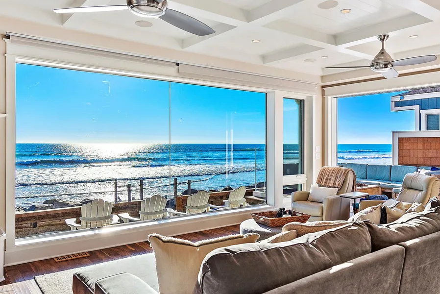 Inspired by the magnificent, shingled estates that line the coast of Cape Cod, this luxurious custom home offers front-row ocean-view living in San Clementes Capistrano Shores enclave. Both levels enjoy panoramic Pacific Ocean, Catalina Island, coastline, bluff, harbor and pier views that extend north and south from the residence. Six bedrooms and five baths are offered in approximately 2,964 square feet, allowing ample room and generous comfort for residents and guests. Enter through a gated side patio that reveals a built-in BBQ bar, an outdoor dining area with open-air fireplace, and a wraparound seating area right over the beach. On the other side, direct access from the laundry room and an outdoor shower makes it easy to head indoors from the beach. A Dutch door opens to the main level, which is bathed in natural light and adorned with handcrafted millwork, a stunning ocean-view pic...