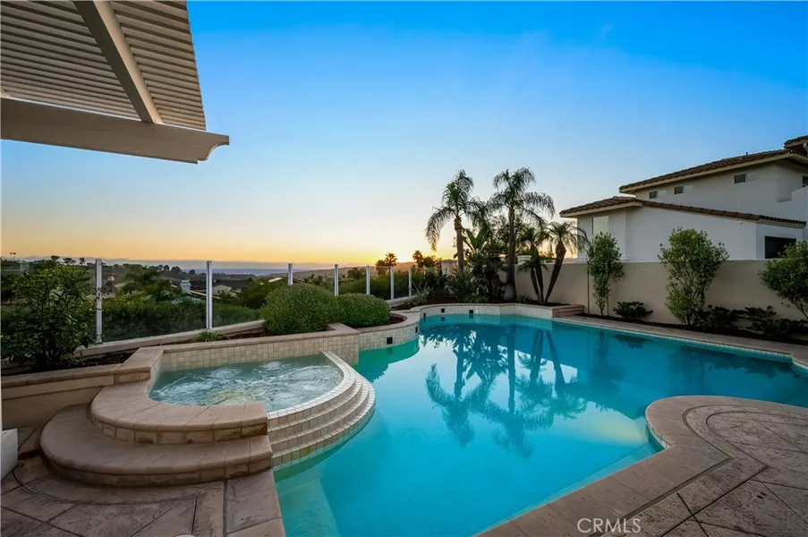 SUNSET and OCEAN/CANYON VIEWS abound in this coastal pool home and what better spot to relax and enjoy a Southern California lifestyle than 10 Salermo! Don't miss the endless views and coveted cul de sac location! This newly painted interior five-bedroom home is situated at one of the highest points in Marina Hills, and rarely do homes on this street come on the market! Situated at the end of the cul de sac with an extremely long driveway, this popular home has it all, with a downstairs bedroom (currently being used as an office) and full bath, open concept kitchen and a family room with a fireplace, built-in cabinetry, all that is centered on capturing your sunset and ocean views! Right when you enter, the high ceilings in the entry and living room beckon you to the backyard, which has a beautiful saltwater pool and spa, a newer pergola for Al Fresco dining, stamped concrete, and a buil...