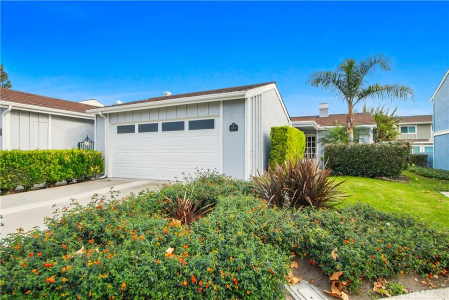 This rarely available semi-detached single-story home is a gem with its vaulted ceilings and spacious design. You'll be captivated by the large garden window offering a serene view of the luscious patio area. Inside, the home boasts wood laminate flooring throughout, a stunning stone-covered fireplace, and a kitchen with granite counters, recessed lighting and kitchen nook. The home features a formal dining area, newer dual pane windows and sliding doors, with two access sliders leading to the private patio, newer Heating and Air Conditioning with Filtration system and new steel access door to the Garage. The property includes a welcoming front courtyard, a roomy two-car garage, and a full two-car driveway, providing ample parking space. The third bedroom is currently used as a den with a double door, the closet in hall can be reversed to convert den to a true third bedroom. All of this ...