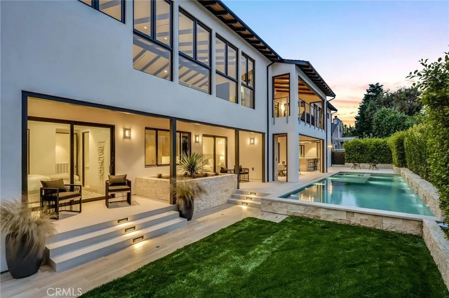Travel downstairs by way of the central floating steps, or custom elevator, and find yourself in the secondary living space with access to the rear yard - designed to entertain with ease under the covered loggia, around the fully equipped bar, or by the sparkling pool surrounded by lush landscaping that provides privacy and seclusion. An attached ADU provides an additional living space in a beautifully compact fully functioning 2-story home – the perfect space for extended family, live-in help, guests, or even grown children. Additional important home features include - Lutron lighting, owned solar, security system, a/v wiring and speakers throughout, pre-wired shades, etc. In the heart of Newport Heights, find yourself moments from Newport Beach's award winning schools, famous beaches, exceptional retail shops and restaurants.