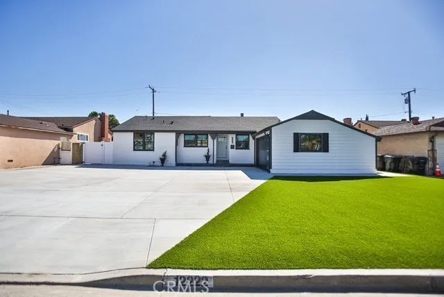 Discover this stunning, totally remodeled 4 bedroom, 2 bathroom home, offering 1,174 Sqft of thoughtfully updated living space. Nestled on a spacious 7,181 Sqft lot on a peaceful cul-de-sac, this home boasts undeniable curb appeal. Ample parking and clean water Eco lawn landscaping adorn. Step inside to find a beautifully updated kitchen and bathrooms that boasts gleaming quartz countertops and beautiful backsplash, white shaker cabinets with soft-close doors and drawers, black hardware and fixtures, and stainless steel appliances—all designed to inspire your inner chef. The home’s 2 bathrooms have been tastefully remodeled. The hall bath offers a full tub with shower, while the primary bath features a walk-in shower with a sleek glass enclosure. Throughout the home, each room enjoys it's own mini split for heating and air-conditioning for better efficiency and economy. The attached garage offers secure parking and additional storage. Step outside to your spacious backyard where a covered patio, and generous side yards provide the perfect setting for relaxation or entertaining. There is also potential for RV parking on the east side of the driveway, offering a convenient space for your recreational vehicle or storing outdoor gear. The back yard has plenty of room to add that ADU for additional living and/or income. Ideally located near Disneyland, Garden Walk, and freeways, this home offers easy access to top dining, shopping, and entertainment. Don’t miss out on this incredible opportunity!