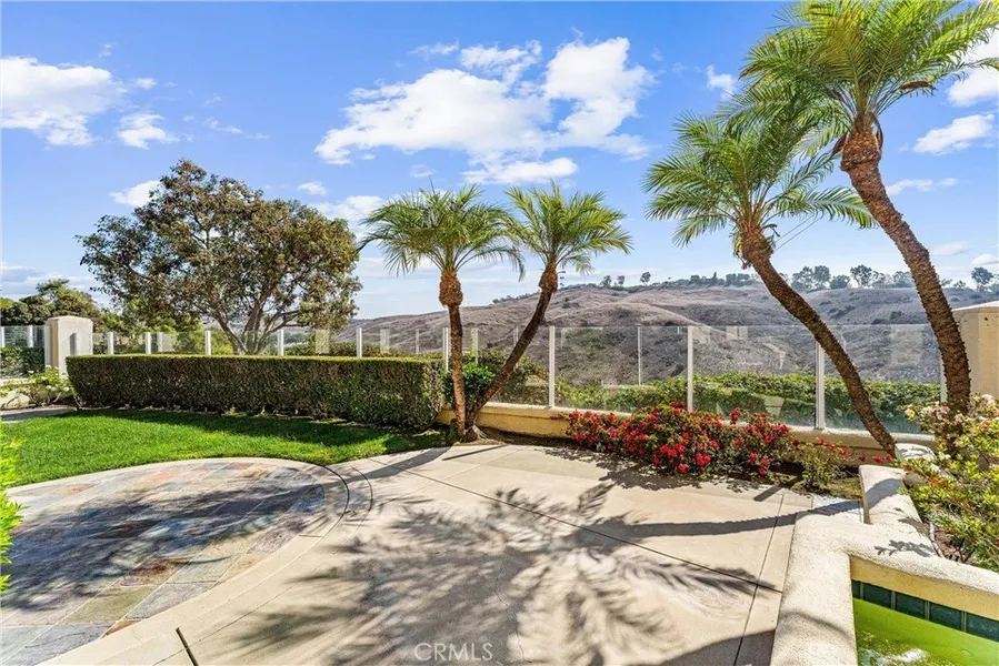 spa-inspired bathroom features quartz countertops, dual vanities, walk-in shower, a freestanding soaking tub, along with upgraded mirrors and lighting. Closets are beautifully organized with custom built-ins. A spacious, secondary bedroom includes high ceilings, an en suite bathroom and custom closet drawers. The backyard offers resort-like tranquility with sweeping canyon vistas and soothing fountain. The expansive patio is perfect for entertaining, dining al fresco or simply enjoying the sunshine in peace and privacy. Additional highlights include: PEX repiping, inside laundry room with sink, plantation shutters, garage built-ins and a location which provides plenty of parking for guests. Residents of Siena enjoy access to a private pool and spa as well as full use of Marina Hills amenities including an Olympic-size pool, clubhouse, tennis and pickleball courts, bocce ball courts and beautifully maintained parks. Nearby walking, hiking and biking trails lead directly to the world-renowned Salt Creek Beach. Don’t miss the opportunity to call this exceptional property your new home!