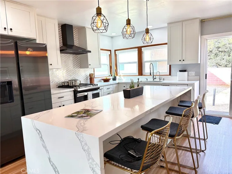 Great way to start the New Year! Look no further. This substantially remodeled Single family home offers a wide open floor plan, recessed lights, a quartz waterfall countertops in the spacious kitchen and an abundance of light from every side! New wood style flooring, newer kitchen quartz countertops, and newer cabinets. Has fridge and stove. Easy living as all this connects to the backyard through sliding glass doors. (Yard is divided with ADU in the back for privacyl This home includes two generous sized bedrooms. Use one as the main bedroom and the second for an office, guest room, or additional bedroom. Easy access in the newly remodeled walk in shower, all with very tasteful hardware and accents. Complete with a Split A/C unit, washer /dryer, 1 car garage and an extra parking spot on the driveway. Lovely neighborhood and the bonus is that it is not a through street! It is a...
