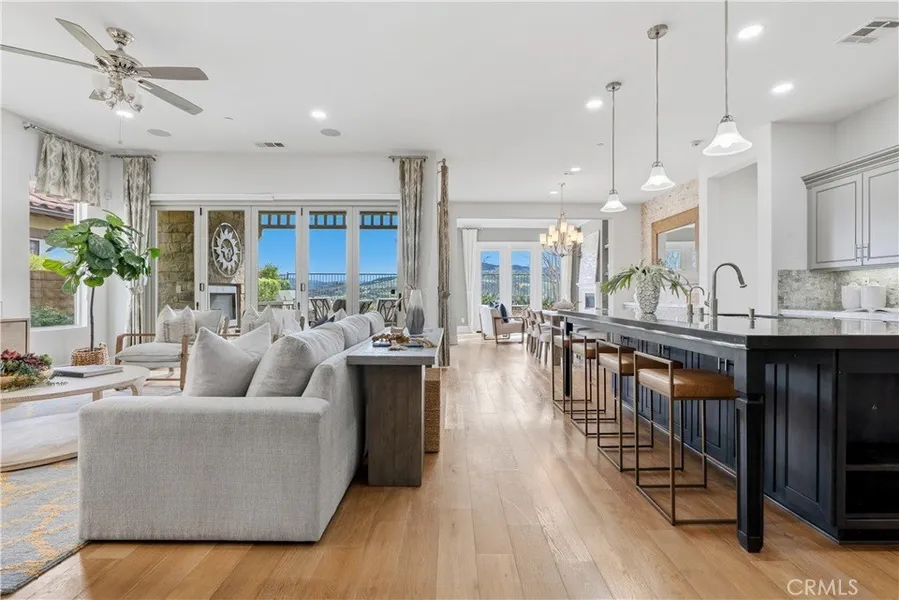 Welcome to one of the most exceptional view homes in Rancho Mission Viejo, located within the gated Gavilan Sendero community, an exclusive 55+ neighborhood known for its peaceful setting and resort-style lifestyle. Positioned to capture what many consider the best and quietest view in all of RMV, this former model home offers a rare combination of privacy, tranquility, and elevated design. Spanning 2,269 sq ft with 3 bedrooms and 2.5 baths, the home has been enhanced with over $400,000 in total upgrades, blending builder-selected finishes with extensive post-purchase improvements. Expansive bi-fold doors open the family room to a stunning California Room with fireplace, creating seamless indoor-outdoor living. The backyard is a true retreat, featuring panoramic views, a built-in BBQ, fire pit, and multiple entertaining spaces, all set on a 5,659 sq ft lot. Inside, no detail was overlooked. Highlights include custom crown molding, wainscoting, built-in features throughout, fully upgraded bathrooms, in-ceiling speakers, ceiling fans, and a beautifully added sunroom with a second fireplace. Modern conveniences include solar, wood flooring throughout, whole-house water filtration and softener, and thoughtful upgrades designed for comfort and ease. From sunrise to sunset, the views are breathtaking, the setting is remarkably quiet, and the lifestyle is unmatched. This is a rare opportunity to own a true showcase home in one of RMV’s most desirable 55+ communities. Schedule your private tour today and experience this one-of-a-kind Gavilan Sendero view home in person. Beyond the home, you’ll enjoy a vibrant, resort-style lifestyle with exclusive access to private Gavilan 55+ amenities, including The Perch, The Hacienda, The Outlook, The BBQ Barn, and The Getaway. Stay active and connected with a state-of-the-art fitness center, saltwater pool, spa, cabanas, bocce ball courts, yoga studio, fire pits, and social lounges. And when the grandkids visit? You’ll have full access to Rancho Mission Viejo’s award-winning all-ages amenities, arcade, community farms, fitness centers, indoor basketball gym, putting green, Sports park, tennis and pickleball courts, parks, and events that make this community unlike any other. Experience 4 Palomino in Rancho Mission Viejo today.
