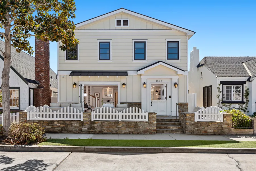 Positioned on one of the most desirable blocks of Balboa Peninsula Point, 1577 Miramar Drive presents a timeless coastal retreat just steps from both the ocean and bay. This 4 bedroom, 4 bathroom residence showcases quality craftsmanship and thoughtful design across all three levels, blending casual seaside living with elegant comfort. The main level welcomes you with a spacious front patio and a Dutch-door entry, opening to a sun-filled great room with a fireplace, custom built-ins, and a chef’s kitchen with Thermador appliances, Quartz countertops, and an adjacent dining area overlooking the private backyard—perfect for relaxed outdoor gatherings. A bedroom and full bathroom add versatility to the main level, making it great for a home office or guest’s suite. Upstairs, the primary suite offers a spacious walk-in closet and spa-inspired bath with soaking tub, dual vanities, and a walk...