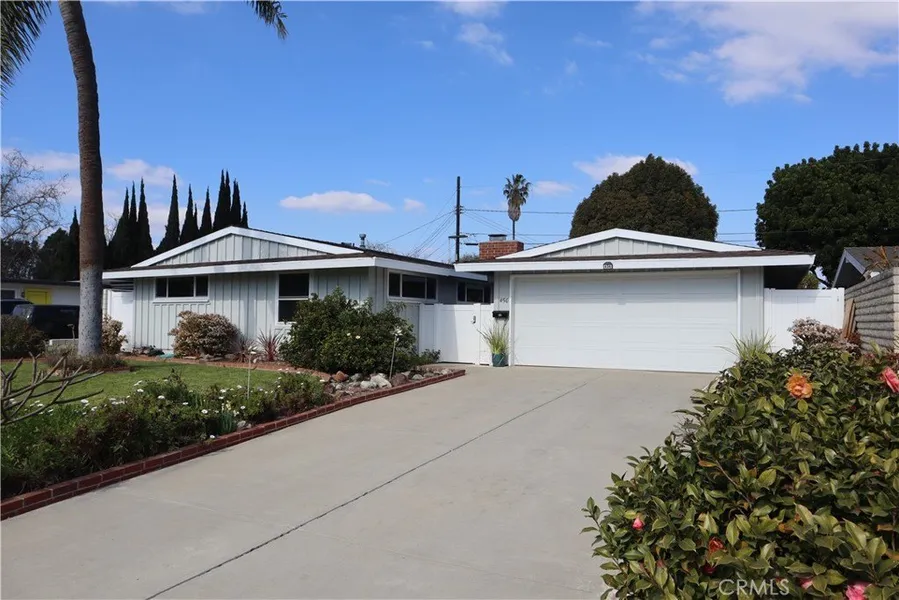 This beautifully remodeled College Park home offers modern elegance and convenience. Nestled on a quiet cul-de-sac, the property features an extra-long driveway that provides ample parking, with the potential for RV parking. Step inside to discover a bright, open floor plan with vaulted ceilings, creating a spacious and airy atmosphere. The stunning kitchen boasts a large island with stylish pendant lighting, white shaker cabinetry, quartz countertops, a built-in refrigerator cabinet, and a generous pantry. The home includes a refrigerator and stackable washer and dryer for added convenience. Throughout the home, you'll find beautiful engineered wood floors and dual-pane windows, ensuring both style and energy efficiency. The guest bathroom is equally impressive, with dual sinks and a tiled tub/shower with accent. The ensuite bedroom offers a remodeled bathroom with walk-in shower. The front entry is enclosed with a privacy gate, enhancing the home's appeal. Outside, a two-car detached garage and an additional refrigerator. The extra-long driveway provides plenty of space for guest parking or potential RV parking. Located in a desirable neighborhood, this home is close to bike trails, the farmers market, OC Fairgrounds, and a short drive to the beach. Additionally, you'll enjoy easy access to a variety of restaurants and shopping options nearby. This home is the perfect blend of style, functionality, and prime location!