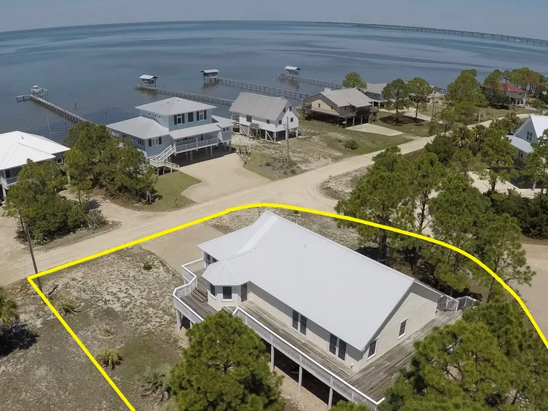 Bay View home, comfortably design on one level. Open Great room, kitchen, dining area, ceramic tile floors vault ceilings. All 4 bedrooms have vaulted ceilings, french doors to deck,carpet. Utility room, downstairs storage,concrete carport parking, concrete pilings, metal roof and vinyl siding.