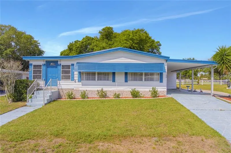 GOLF COMMUNITY - 55+ Community - Welcome home to this quaint 24 hour gated community. Outside you notice this wide manufactured home with attached carport, covered workshop with AC under the carport, manicured landscaping, complete exterior repaint, and the lawn has irrigation. This home is a 2 bedroom / 2 full bathroom, 1,600 + Square Feet of Living space, hardwood floors throughout, move-in ready, clean, outside laundry room, plenty of prep space and storage in the kitchen and a large master bathroom. **NEW ROOF**. Not only is this home ready, but the community is also ready to explore the tennis courts, pool, 2 fishing docs, golfing on the 72 par championship golf course, driving range, pro shop, heated spa, cornhole, pickleball, fitness center, shuffleboard, horseshoes, free bus transportation for grocery and shopping. Nearby you have good schools, parks, Wekiwa state park, rock spri...