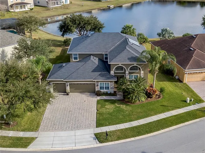 Lovingly maintained and cared for by the original owners, this stunning WATER VIEW home with a SOLAR HEATED SALT WATER POOL on an OVERSIZED PREMIUM HOMESITE is a rare find! One of the largest homes in Cypress Lakes offers 3593 square feet, 5 bedrooms, 4 full baths, 2 half baths, DOWNSTAIRS MASTER BEDROOM, a LARGE FIRST FLOOR OFFICE (could be a 6th bedroom) a roomy upstairs loft, and upgrades galore! When you arrive you will be charmed by the neatly manicured home with a THREE CAR GARAGE and PAVER DRIVEWAY. As you enter through the double entry glass doors you are greeted by a dramatic two-story foyer with a formal living & dining room and a dual entry staircase that will conveniently take you to the second level. You will also notice the spacious office, perfect for those working from home! The gorgeous slate floors that run throughout the living areas of the first floor will guide you to the heart of the home where you can enjoy time relaxing and enjoying the beautiful pool and water views. The open kitchen overlooking the family room features 42" cherry wood cabinets with under counter lighting, double built-in ovens, pot filler, stainless steel appliances, granite counters, slate backsplash, island with breakfast bar, ample pantry space, and a breakfast nook overlooking your pretty backyard oasis. From your family room, french doors take you to the covered/screened lanai to your refreshing saltwater, solar heated pool with a waterfall made of Tennessee River Rock. The paver patio, grilling station, outdoor shower, and a dedicated pool 1/2 bath add to the enjoyment. Enjoy watching a rocket launch or enjoying the abundant wildlife as they frolic by the large pond. The spacious first-floor owners' suite is highlighted by dual walk-in closets and private direct access to the rear patio through beautiful french glass doors. Upstairs you'll be amazed by four nicely sized bedrooms including two that are suites with private baths. A full bath is conveniently located to service the additional two bedrooms and loft. The oversized loft area can be used as a game room, upstairs den, or study area. Upgrades galore! A NEW ROOF IN 2020, NEW DOWNSTAIRS A/C IN 2019, EXTERIOR FRESHLY PAINTED IN 2018, 120 GALLON SOLAR WATER HEATER, DOUBLE PANED WINDOWS, WATER SOFTENER/FILTRATION SYSTEM, CENTRAL VAC, intercom system, security system, wired for central stereo system inside & out & transferable termite bond. The beautifully landscaped master-planned community of Cypress Lakes offers its homeowners numerous amenities: a resort-style pool with two water slides and a splash pad, clubhouse with kitchen, lounge and pool table, an exercise room, walking paths and biking trails, basketball and tennis courts, playgrounds, and a dog park. In addition, you will find an elementary, middle, and high school is a very close vicinity of the home. Close to major highways to easily reach Orlando International Airport, UCF, Downtown Orlando, Research Park, Waterford Lakes, Siemens, Lockheed Martin, NASA, Space Coast & the beaches. Fall in love with this well-designed dream home and enjoy the Florida lifestyle today! You must see it to appreciate the impeccable condition of this stunning home!!!!