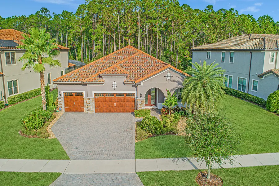 Location, privacy and style. Turnkey residence in the gated community of the Enclave at VillageWalk in Lake Nona, minutes away from Disney World's future 60-acre campus. With 3,197 square feet of interior living, with four bedrooms, four baths and a three-car garage. This single-story Sandpoint plan built by Pulte Homes has all the upgrades and impeccably appointed finishes you expect. Nestled on a peaceful, tree-lined street with beautiful curb appeal, the home is built on a 0.26-acre premium lot. Mature trees and a manicured yard frame the attractive faade, complete with stonework, barrel-tiled roof and a brick paver driveway. Step through the 8-foot, decorative glass doors into the grand foyer and be wowed by the gorgeous porcelain-tiled flooring that flows throughout the home. The expansive great room is bathed in natural light and framed by 5 1/4-inch crown molding and 12-foot ceilings. The kitchen is modern and sleek and features 42-inch soft-close cabinets with under-cabinet LED lighting, Giallo Vicenza granite countertops, Safari-tiled backsplash, KitchenAid stainless steel appliances, natural gas cooktop with vent hood, double ovens, a large island with dishwasher, sink, breakfast bar, beverage refrigerator and a large walk-in pantry. Open to the spacious living room with a coffered tray ceiling and the dining room with a custom buffet wall, this part of the home offers an ideal space for entertaining guests and family. The master retreat is private and spacious with a spa bath boasting a glass-enclosed super shower with multiple shower heads, soaking tub, double-split sink vanities with granite countertops and a customized walk-in closet. Three additional bedrooms, all with walk-in closets, one en-suite and the other two share a dual bath, inside laundry room with built-in cabinets, Corian countertop and sink, complete the home. If you work from home or homeschool, bedroom four can easily transition into your home office. Head outside to the lanai and find your tranquil retreat that overlooks a natural conservation area so you will never have rear neighbors. Prewired and plumbed for a summer kitchen with a Flagstone paver deck and built-in fire pit, you will enjoy the cool Florida evenings underneath the shining stars roasting marshmallows. This is the perfect area for hosting family activities and enjoying weekend barbecues. Oversized three-car attached garage with epoxy floor has enough storage for your golf cart or boat. The home has over $150,000 in options and upgrades that include plantation shutters, thermostat with humidifier, exterior floodlighting, interior recessed can lighting, a recirculating water heater with timer and Moen bath fixtures. Energy-built with features that include double pane windows, 15 SEER HVAC with heat pump, R30 ceiling insulation and in-wall pest guard system. Natural gas and in a maintenance-free community. The Enclave offers first-class resort-style amenities that include clay tennis courts, a 24-hour fitness center, two pools, a restaurant and a stunning clubhouse. Minutes to the USTA Tennis Center, Medical City, Lake Nona Town Center and Orlando International Airport all you could ask for and more right outside your door. Lake Nona is a highly sought-after location close to excellent schools, shopping, banking, entertainment and recreational venues. The life you want to live is right here waiting for you. Make your appointment today. One-year home warranty provided.