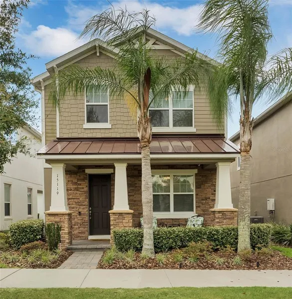 Spectacular Key West style cottage home in the highly desirable community, Overlook at Hamlin! Boasting 3 beds, 4 baths, with gorgeous master bedroom/master bath suite. The kitchen is truly a coastal show-off with bright white cabinetry, quartz countertops, large center kitchen island with bar seating, huge pantry, gas stove, stainless steel appliances, soaring high ceilings and lots of bright, natural light. Living room extends off of the kitchen, overlooking the rear patio/lanai and courtyard garden. First level boasts a guest bedroom suite w/ full bath and walk-in closet. Second level features an open/airy loft layout with high ceilings, laundry room, office area, second bedroom, second full bath and Master's Suite. Double entry doors gracefully lead into the Master Bedroom featuring bright windows and tray ceiling. Double doors lead into the Master Bathroom with plenty of natural light, double sinks with a center vanity, stone countertops, custom shower and large walk-in closet. Community amenities feature: 2 playgrounds, private dog park, walking trails, open parks, private fitness center open 24/7, Overlook Clubhouse with resort-style pool, splash-pad and outdoor dining pavilion, a private community boat ramp, private dock, private canoe rentals, panoramic views of Lake Hancock throughout the community and an active lifestyle program for year-round community events! HOA fees include your monthly landscape maintenance and lawn care. Near excellent schools, very close distance to restaurants and stores with excellent views of Disney fireworks! Walk around Lake Hancock on pristine walking paths and trails. Experience the Florida dream lifestyle and live like you're on vacation everyday in this remarkable Hamlin gem!