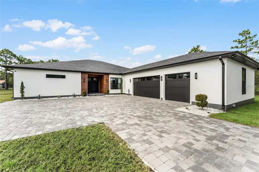 Under contract-accepting backup offers. Buyer opportunity - a private oasis nestled on 1.24 acres of pristine land. The backyard is fully fenced offering privacy and security. As you enter through the brick paver entry and driveway, you'll love the stunning landscaping that surrounds this property. Step inside the custom home and experience the perfect blend of elegance, modernity, and functionality. The open floor plan creates a seamless flow throughout the living spaces. The versatile layout offers a formal living or dining area, allowing for flexible use to suit your needs. The large family room features an electric fireplace with a floating cedar mantle. Embrace the natural beauty that surrounds the home with bright and pocket sliding doors leading to the full length of the house's back porch. From here, you can enjoy breathtaking views of your large beautiful backyard where you can add a pool or anything you've been wanting. The bedrooms are thoughtfully designed in a split plan configuration, ensuring privacy and comfort for all. The open and spacious kitchen is a chef's dream, equipped with a breakfast bar and an island for convenient meal preparation. Retreat to the spacious owner's suite, featuring two massive walk-in closets and an abundance of natural light. Convenience meets functionality with a large interior laundry room, making household chores a breeze. Every detail has been carefully considered to ensure a comfortable and convenient lifestyle. The home features a four-course stem-wall foundation, vinyl impact windows and impact fiberglass doors, 6" fox block solid core insulated concrete form walls throughout the main house, r30 open cell spray foam insulation through the house, double hurricane truss straps, energy efficient SEER 15 carrier air handler and hybrid water heater, kitchen aid steel appliances, 50 amp back up generator/RV plug, custom stained cypress wood siding, and the electric conduit for a pool is pre-run for future addition. This home is also a gold-rated certified green home and comes with the FGBC certificate. Includes wind mitigation report to maximize property insurance discount. The gym does not convey. You will be proud to make 19512 Majestic your own. This property is located in the very desirable Wedgfield, Florida community. You are surrounded by nature! Enjoy horse and hiking trails. Top Rated Seminole County Schools!! Easy access to the beaches, the airport, schools, and shopping. You can be in Orlando downtown in 30 minutes or less. The best of country living with all the conveniences of city living.