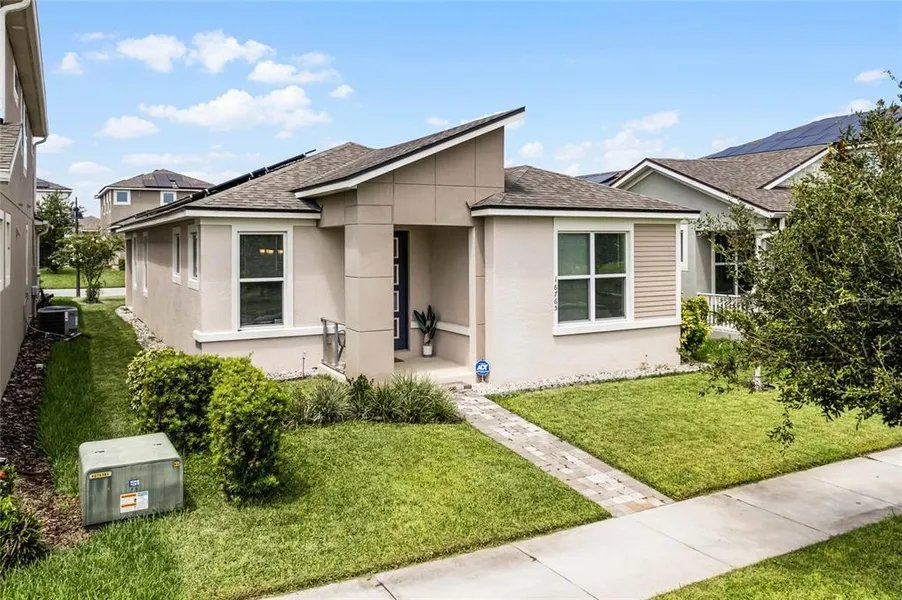 This beautifully maintained 3 bed 2 bath single family home is a must see! It's located in the highly sought-after Hawksmoor community which is nestled within Winter Garden's popular Horizon West area. As you enter the home, you're greeted with an open concept layout, high ceilings, split bedroom floor plan, and lots of natural light! The kitchen boasts of dark 42" cabinets, Stainless steel appliances, beautiful Quartz countertops and ample storage space. The extra large kitchen island will surely make entertaining friends and family a breeze! The Primary bedroom is tucked away in the rear of the home featuring 10 ft. coffered ceilings, large walk-in closet, an en suite bathroom with dual sinks, quartz countertops, and a spacious shower with a full tile wall. The two secondary bedrooms and full bathroom are located towards the front of the home away from the main living area providing privacy and easy access for guests. The home also includes Solar Panels, a full-home water filtration/water softening system, and Smart Thermostat. The community is zoned for top-notch schools and offers amenities the whole family can enjoy such as a Fitness Center, Walking trails, a fabulous Clubhouse, a Resort-style pool and a splash pad. Easy access to FL-429 and the Turnpike means you're minutes away from Disney's Magic Kingdom, world-class dining, shopping, and all other major attractions. Come and enjoy all the beauty that Central Florida has to offer!