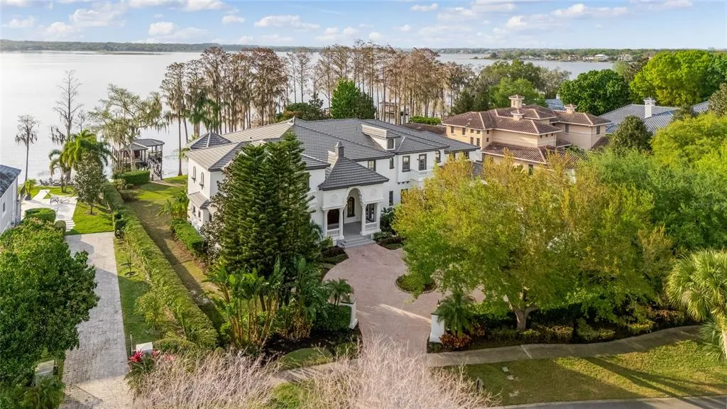 One or more photo(s) has been virtually staged. Indulge in the epitome of waterfront luxury living with this extraordinary estate boasting 2 acres of pristine shoreline on Lake Down, nestled within the desirable Windermere community. Positioned majestically along the shores of Lake Down, within the esteemed Butler Chain of Lakes, this residence offers a pinnacle of opulent lakeside living. Spanning over 15,500 square feet of sheer luxury, the 8 bedroom and 8 bathroom magnificent estate leaves no detail overlooked. Every aspect exudes unparalleled elegance. Immerse yourself in the ultimate entertainment experience with a home theater, spa retreat, and a private fitness center area for the health enthusiast. As you enter through bespoke custom mahogany doors, you're greeted by a breathtaking two-story vista with 30 foot ceilings. The lavish master suite, complete with a private sitting area and spa-like en-suite, invites indulgence and relaxation. The epicurean kitchen is a culinary haven featuring a sprawling center island and a concealed butler's pantry. Elevate your lifestyle with amenities such as a private elevator, personal sauna, and dedicated yoga/meditation sanctuary. Car enthusiasts will delight in the 6-car garage, while water lovers will appreciate the convenience of the covered boat and jet ski lifts, that offers unparalleled views of the tranquil lake. For guests seeking a retreat, a detached 2-bedroom guest house awaits, ensuring both privacy and comfort. Delight in luxury living on covered patios and outdoor spaces while basking in the serenity of lakeside vistas. Conveniently located just moments away from fine dining, premier shopping, and the world-renowned Isleworth Golf and Country Club, this luxury retreat offers the pinnacle of convenience, leisure, and sophistication-an extraordinary sanctuary that exceeds all expectations. Experience the epitome of luxury living at its finest. Recent updates include Brand New Tile Roof, freshly painted interior and exterior, Epoxy Garage floors, 3 new HVAC Systems, New boat dock electrical panel, new flooring upstairs and newly designed English Garden featuring artificial turf.