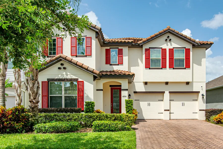 Modern functionality meets contemporary design. This private home was previously used by the home builder to showcase as an addition to their available model homes. Located in the award-winning Orchard Hills community, this Hayes II open-concept home with a bonus bedroom and bath has been generously upgraded with luxurious additions throughout. Upon entering the front door, you are greeted with a grand Swarovski crystal chandelier in the 20-foot ceiling foyer. Lower level bedroom/office and bath simplify convenience. A spacious formal dining room that can seat eight is ready for large gatherings. The chef-inspired kitchen is appointed with dual ovens, dual sinks, energy-efficient dishwasher, microwave, five-range electric cooktop and upgraded 42-inch solid wood cabinetry. A Kinetico reverse osmosis alkaline water filtration system allows you to be confident, knowing you have the healthiest and cleanest drinking and bathing water possible at your disposal. Entertaining guests is easy with seating for three at the large island, the breakfast nook or very spacious seating area in the great room. High-quality Oak Lodge laminate flooring lay the stairs and entire upper level. The primary bedroom fits a California king comfortably, has a large custom-built California Closet and an en-suite with a separate tub and shower. Three out of four bedrooms have walk-in closets. The laundry room is conveniently located upstairs. Completely turnkey with five bedrooms and four full baths, this home can accommodate a large family or guests with very little attention needed for maintenance. Natural light shines through the many tinted, double-pane windows during daylight hours. In the evening, 5,000K LED lights brighten the house throughout. Enjoy backyard gatherings while cooking in the outdoor kitchen under the covered lanai and enjoy picturesque sunsets due to true east/west facing. With no direct, rear-facing neighbors, the backyard commands added privacy. A finished garage with rack space storage adds plenty of storage. Cameras are inconspicuously placed indoors and outdoors that help protects your family and investment 24/7. Home exterior painted July 31, 2021. Outdoor kitchen bought July 2021. This home boasts one of the larger lots in the neighborhood at 7,000 square feet. The community has a pool, dog park, fitness center and clubhouse. A-rated schools. Call today for a tour.