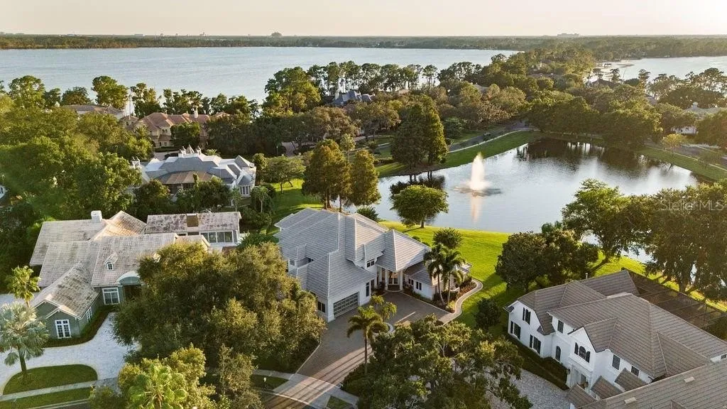 Welcome to 9138 Great Heron Circle, !!!!!!! SELLER FINANCING AVAILABLE !!!!!! A true masterpiece of architectural excellence nestled in the highly sought-after guard-gated community of Cypress Point in Orlando. Built by esteemed builder Ray Coudriet and designed by architect Tom Price, this custom estate was meticulously crafted to withstand winds up to 145 mph, reflecting the highest standards of quality construction and luxury living. !!! BRAND NEW ROOF !! ( West Lake Concrete Tile Sterling Grey with NEW White 6 inch gutters around the complete home totaling $145,733 completed September 5, 2025). Bathed in natural light from expansive picture windows, the home is perfectly positioned to offer panoramic views of a tranquil pond and the breathtaking sunsets over Lake Sheen, part of the prestigious Butler Chain of Lakes. Inside, modern design meets timeless elegance, beginning with a grand foyer featuring gleaming granite and white-washed bamboo wood floors illuminated by ambient LED cove lighting, and 16 surveillance cameras. The open-concept layout is tailored for both comfort and entertainment, featuring a spacious home theatre and a glass-enclosed home office for privacy and productivity. Ascend the sleek open-air staircase to discover the serene master suite, which offers a peaceful exercise space overlooking the water, a private balcony for morning coffee, and a spa-inspired retreat atmosphere. The gourmet kitchen is a chef’s dream, outfitted with modern European cabinetry, high-end stainless steel appliances including a Sub-Zero refrigerator, and a layout that inspires culinary excellence. A generously sized laundry room includes a utility shower, while a second large home office provides a tranquil and functional workspace. Floor-to-ceiling glass windows frame uninterrupted views of the pond and lake, enhancing the home’s connection to nature. For wine connoisseurs, the 1,100-bottle wine cellar offers both luxury and function, while the resort-style pool with a swim-up bar and a summer kitchen—featuring a striking backlit Aqua Blue Agate surface and automated pool controls—create the ultimate setting for outdoor entertaining. Car enthusiasts will appreciate the climate-controlled garage with space for up to five vehicles, equipped with two hydraulic lifts and glass doors for a sleek, modern look. With every detail carefully considered and top-tier amenities throughout, this home is the pinnacle of refined living. Don’t miss your opportunity to experience the unmatched elegance, comfort, and sophistication of this extraordinary residence. Schedule your private showing today.