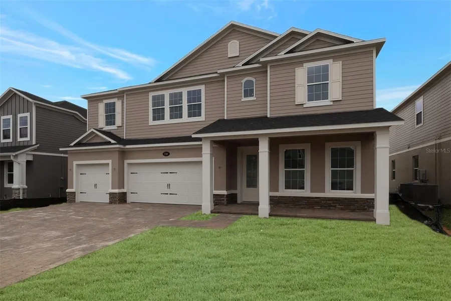 Under Construction. Welcome home to 720 Pointe Emerson Boulevard in Apopka! This gorgeous new construction home features 5 bedrooms, 4 bathrooms, a formal dining room, a 12' x 10' lanai, a spacious second-floor loft, and so much more. An impressive foyer leads you into the home and is the focal area to meet and greet your guests to bring them inside. A formal dining room with pass through an elegant stairway take you towards the heart of the home. As you enter the main living area, you'll be stunned by the grand, open-concept space that encompasses the great room and massive kitchen, with its expansive windows and natural light. The large kitchen will leave you breathless, as it has plenty of storage with a pantry, banks of cabinetry, a huge kitchen island, 42-inch cabinets, and it also has panoramic views of the great room and backyard. A first-floor guest suite and full bath are availa...