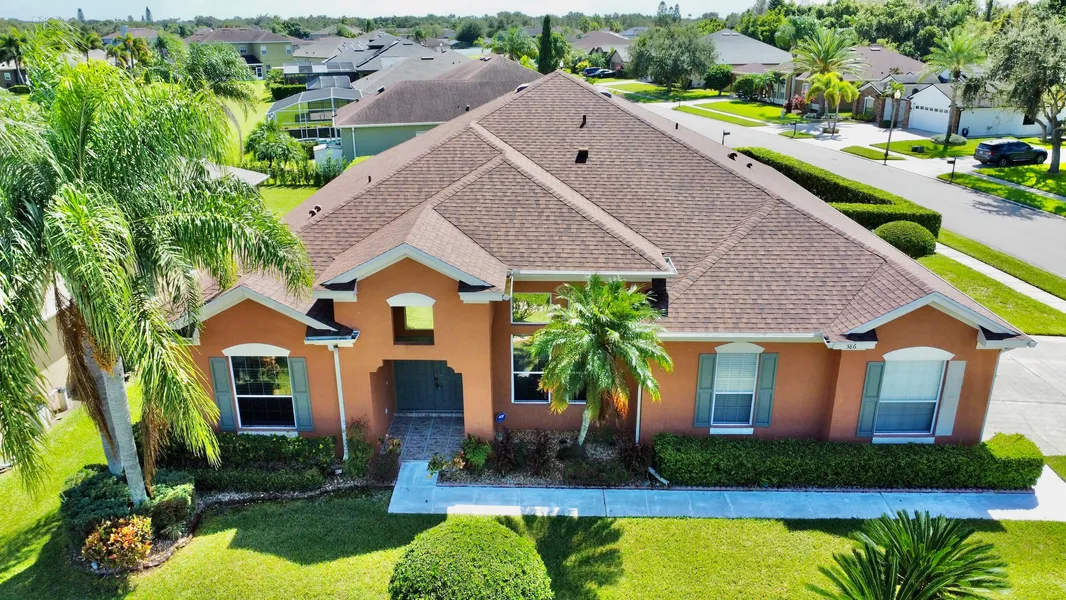One or more photo(s) has been virtually staged. --A Rare Brookestone Opportunity — Spacious Corner-Lot 3-Car Garage Home with a Corner Water View-- If you've been waiting for a home in Brookestone that genuinely feels like the right fit, this 4-bedroom, 3-bath estate-sale property might be the one. Set on a premium corner lot with privacy hedging, a peaceful water view, and a hard-to-find side-entry 3-car garage, this home has been lovingly maintained—and it shows. Major updates like a new roof, new HVAC, and newer wood flooring mean you can move in with confidence. Inside, this one-story home immediately feels open and welcoming. The tall ceilings, bright natural light, and spacious foyer create a sense of comfort the moment you walk in. The living and dining rooms offer ample space for gatherings, while extensive windows frame views of the screened patio and backyard, seamlessly blending indoor and outdoor living. At the center of it all is the kitchen—truly the heart of the home. With stone countertops, extended cabinetry, a center island, and a corner pantry, it's designed for everyday cooking and the kind of moments people love to gather for. The adjoining family room easily accommodates oversized furniture and creates a warm, relaxed setting for movie nights or weekend lounging. The primary suite feels like a private retreat. The extended bedroom includes a cozy sitting area and direct access to the patio, perfect for morning coffee or quiet evenings. You'll also find two closets and a spacious bath with dual sinks, stone countertops, a soaking tub, a walk-in shower, a linen closet, and a private water closet. Just steps away is another bedroom that works beautifully as a nursery, home office, or flex space. On the opposite side of the home are two additional bedrooms and two full baths—an ideal layout for family, guests, or multigenerational living. Outside, the screened patio overlooks a tranquil, hedge-lined backyard with room to add a pool if you wish. The setting feels peaceful and private, with mature landscaping and a calming corner water view. Living in Brookestone means access to pickleball, tennis, and basketball courts, plus convenient proximity to shopping, dining, hospitals, and major highways. And with instant access to Walt Disney World via the 429, it's hard to beat this location for both everyday convenience and weekend fun. A unique bonus: Brookestone's private solar farm helps power the community's main entrance and lighting along Maguire, helping reduce monthly HOA expenses. If you're looking for a beautifully maintained home with space, comfort, and a story to grow into, this one is worth seeing in person.