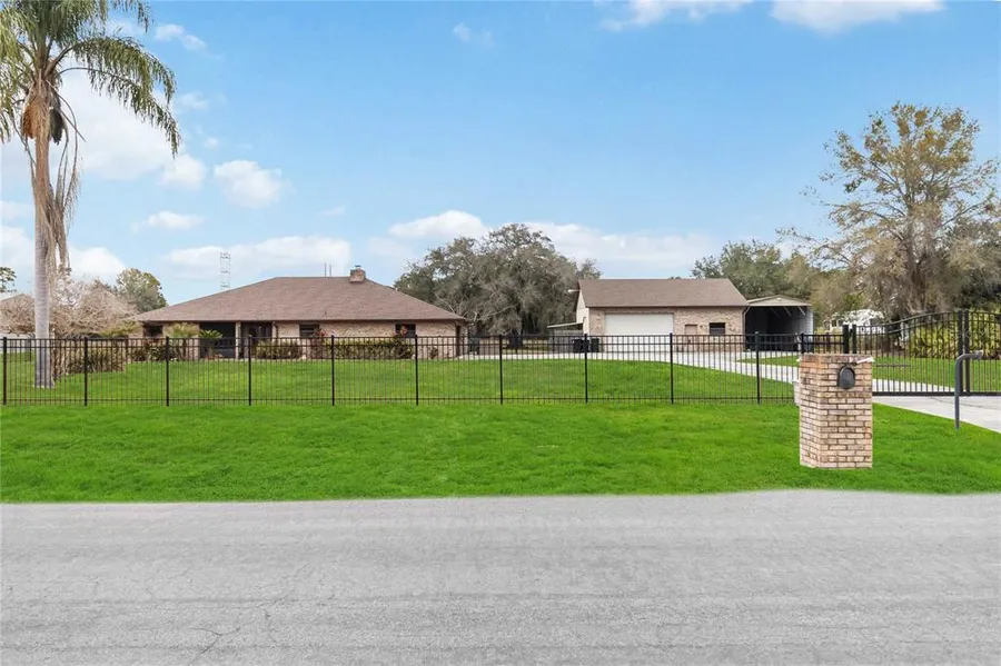 This exceptional home is ideal for anyone seeking space, privacy, and true Florida living, delivering all that and more on 1.78 fully fenced acres behind an electronic gate. Set up with a new roof, A/C, and water heater all installed in 2023, this 3 bed, 3 bath home offers over 2,700 square feet of comfortable living with plenty of room to spread out and unwind, including a spacious room at the back of the home that is perfect for a game room, studio, gym, or additional living space. Enjoy the well appointed gourmet kitchen with built-in KitchenAid appliances. The expansive screened in pool creates a private outdoor retreat ideal for relaxing or entertaining, while the land provides freedom and flexibility with no HOA. If space is what you want for hobbies, storage, or business, the impressive detached workshop with roll up garage doors offers endless opportunities for equipment, vehicle...