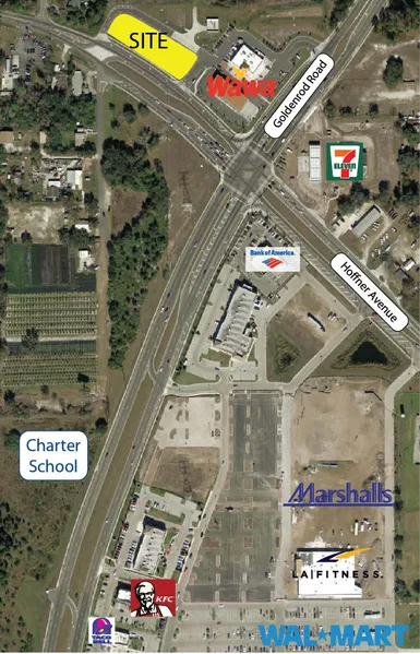 Pad-ready outparcel; build-to-suit/ground lease/sale. Adjacent to new Wawa. Site envelope 0.98 acre. Existing improvements include grade-level site, off-site retention ponds, access roads, stub-outs for water and sanitary.